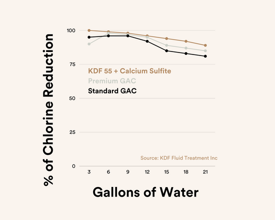 KDF 55 and Calcium Sulphite helps reduce chlorine, copper, iron and lead in hard water.